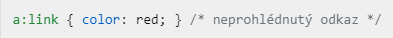 V CSS existuje pseudo-třída :link, která reprezentuje element, který ještě nebyl navštíven. Tato třída odpovídá každému neprohlédnutému elementu .